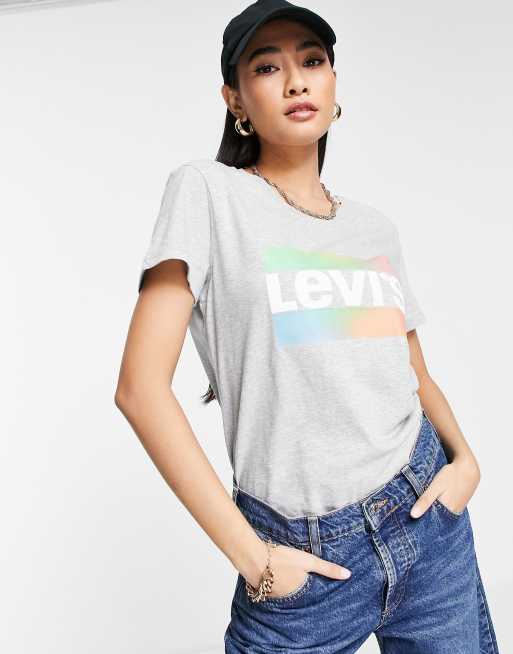 Levi s perfect square logo t shirt in charcoal grey ASOS Very well made.